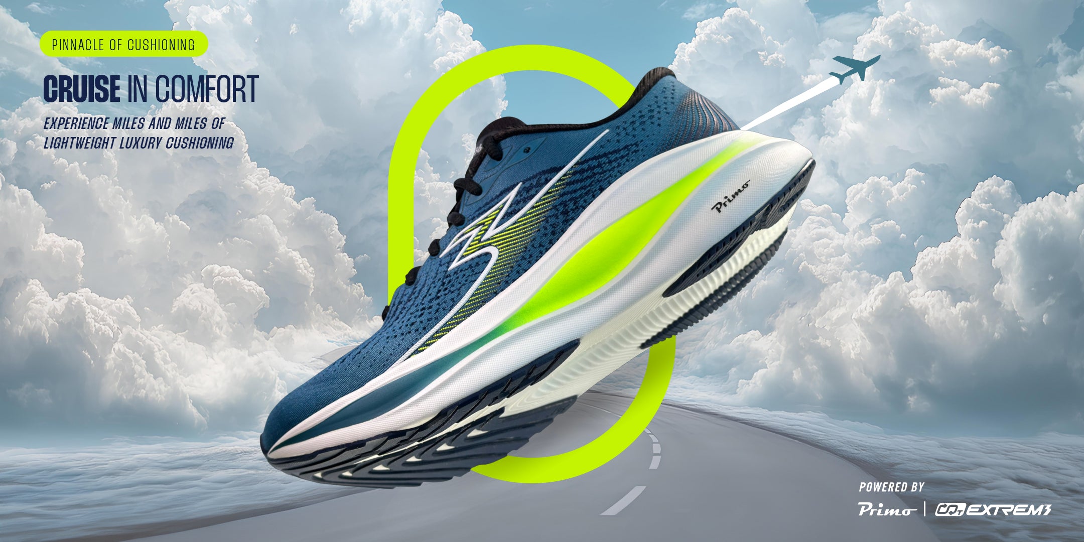The new 361° VENTUS’ two- piece midsole combines our plush Primo foam with the added performance of our new CQT EXTREM3 foam. Together, with a unique platform geometry, they combine to deliver a snappy, yet plush, feeling underfoot.