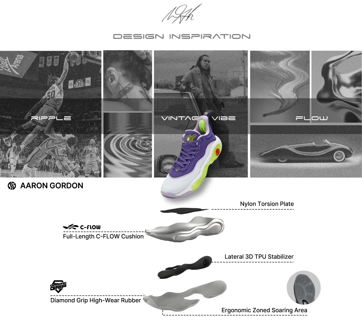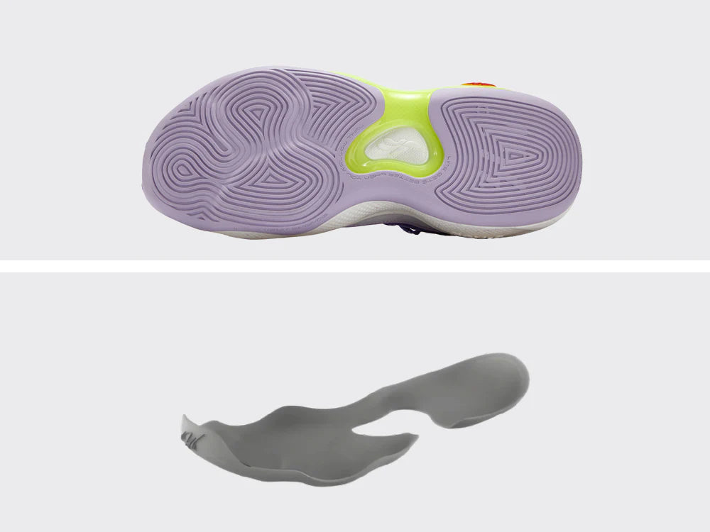 Diamond Grip rubber outsole with multi-directional patterns for sharp stops, quick cuts, and all-court movement.
