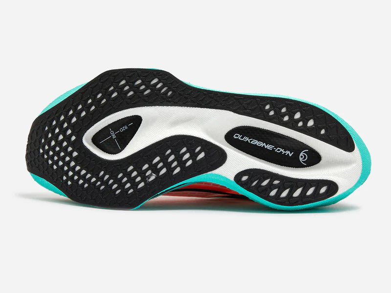 Double-layer Qu!kFLAMECQT (FLAMECQT) midsole for lighter weight, more springiness, and better cushioning, effectively saving energy for long-distance running activities.
