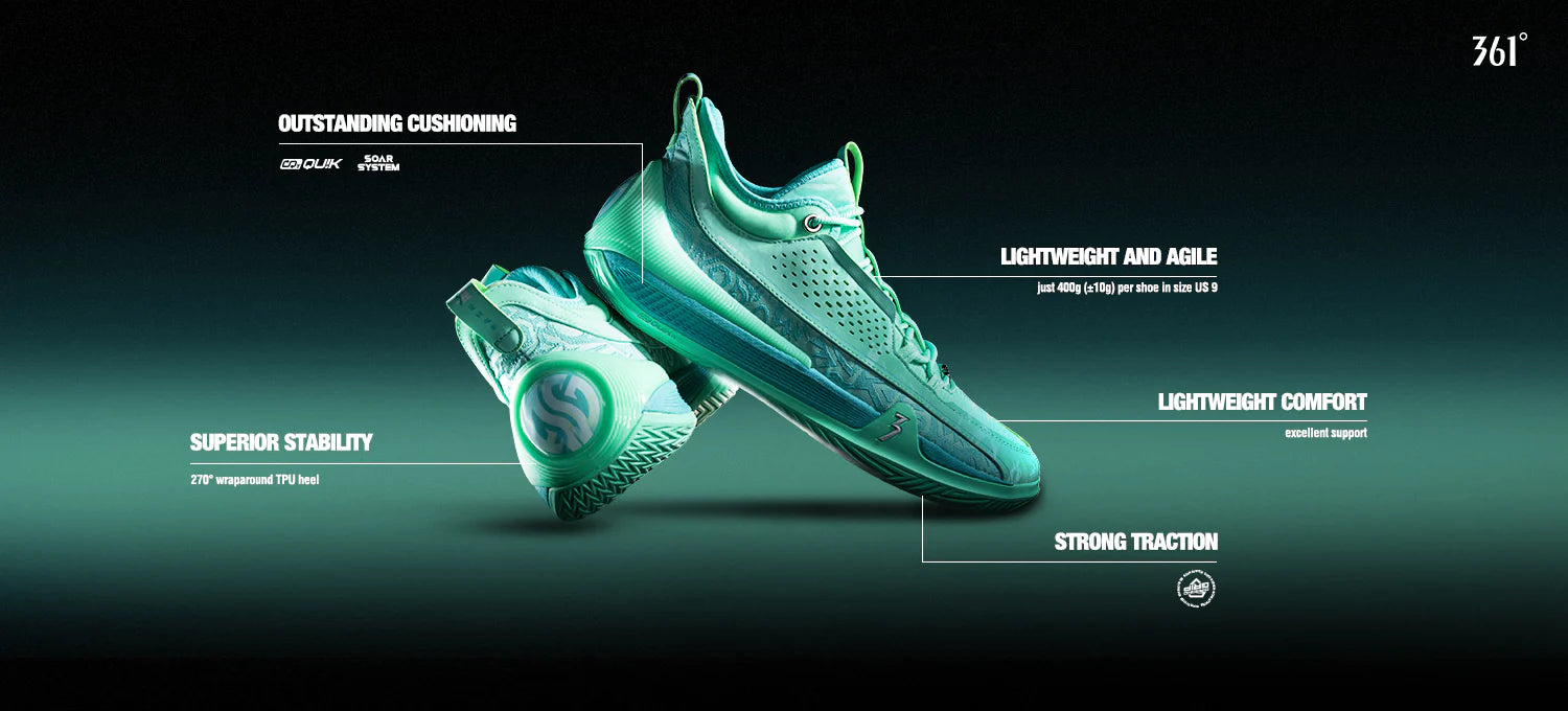 Diamond Grip rubber outsole with multi-directional patterns for sharp stops, quick cuts, and full-court movement. Lab-tested to deliver 30% more durability on outdoor concrete surfaces.